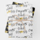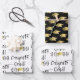Set of 3 coordinating graduation wrapping paper sheets featuring a repeating pattern of CONGRATS GRAD and CLASS YEAR (editable year) in a hand printed brush stroke typography and a faux metallic gold foil graduation cap or mortarboard in black and white. ASSISTANCE: For help with design modification or personalization, color change, transferring the design to another product or if you would like coordinating items, contact the designer BEFORE ORDERING via the Zazzle Chat MESSAGE tab below or email makeitaboutyoustore@gmail.com.