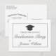 Graduation invitation postcard. Stylish modern minimalist black white design with thin frame.