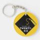 Creative memento keychain keepsake gift featuring black graduation cap and gold tassel on yellow background. To customize edit text to change senior class year.