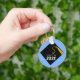 Graduation gift and grad party favors featuring cap with gold tassel design on a light-blue background. Edit text to personalize for senior class graduate.