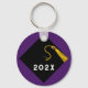 Unique graduation keychain gift and senior class grad party favors featuring black cap with gold tassel. To customize edit text to add year.