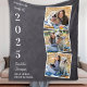 Celebrate your graduate and give a special personalized gift with this custom photo collage graduation blanket. This unique graduate photo collage blanket is will be a treasured keepsake. Customize with 3 of your favorite senior or college photos, and personalize with graduating year, name, high school or college.