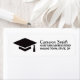 Graduation return address labels featuring a black mortarboard hat/graduation cap. Customizable name and address. You can change the background color with Zazzles customization tool