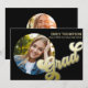 This design features a graduation announcement, with a modern minimalist, perfect for high school or college, with a simple, photo collage, in black and gold, trendy script, with retro typography, perfect for grad party invite, with graduation party details