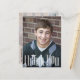 This design features a graduation graduate grad party postcard, with a modern simple class of your year typography, a two 2 photo picture template, with an elegant high school or college, a minimal minimalist script, great for a budget-friendly postcard graduation announcement cards, with mortarboard tassel cap school, great for student senior boy or girl. invitations party supply supplies