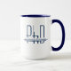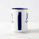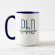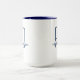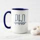 A tall PhD coffee mug with name and degree design in blue on a white background. The inside of the mug and the handle are blue. Simply customize the name, add this mug to your cart, and enjoy your next cup of coffee.