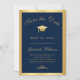 Graduation Navy Blue Gold Frame Save the Date Announcement