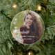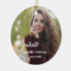 Graduation ceramic round ornament is shown with a sample photo of a graduate with name and date.