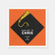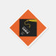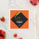 Creative graduation party napkins featuring classic black cap and gold tassel design on orange background. Edit text to add your favorite grad's name and senior class year.