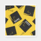 Creative grad party napkins featuring black and gold graduation caps on yellow background. To personalize edit text to add his or her name and senior class year.