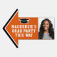 Add a personalized touch to a college or high school graduation celebration with a custom 2 photo directional arrow yard sign. The pictures and all wording on this template are simple to customize, and can be different or the same on front and back. All colors and fonts are easy to change with the Zazzle design tool. Simply place sign in lawn to inform guests that the party is "this way." The modern orange, black and white design features a mortar board cap, classic collegiate style typography and two photos of the graduate, such as senior pictures or images from the commencement ceremony. This outdoor party sign is an elegant way to welcome graduation guests to a special day celebration. Congratulations to the graduate!