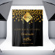 A chic black background. Decorated with golden confetti and a modern, abstract faux gold cap, hat, tassel topper with the year inside. Text: Congratulations! The text: Graduate, and the name are written with a large modern hand lettered style script. For both him and her. A banner , party decoration, or photo booth, backdrop for a 2026 (or any year) graduation party.