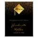 A chic black background. Decorated with golden confetti and a modern, abstract faux gold cap, hat, tassel topper with the year inside. Text: Congratulations! The text: Graduate, and the name are written with a large modern hand lettered style script. For both him and her.