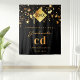 A chic black background. Decorated with golden stars and a modern, abstract faux gold cap, hat, tassel topper with the year inside. Text: Congratulations! and Graduate. Personalize and add a year, monogram initials, name and school name. For both him and her. A banner , party decoration, or photo booth, backdrop for a 20xx (or any year) graduation party.