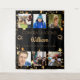 A tapestry for a graduation celebrating his/her life with a collage of 6 of your high quality photos of her, her friends, family, interest or pets. Personalize and add her name and a text/year. Golden text. A chic, classic black background color. Her name is written with a modern hand lettered style script. Decorated with faux gold stars dripping.