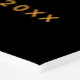 A chic black background. Decorated with dripping golden stars and a modern, abstract faux gold cap, hat, tassel topper with the year inside. Personalize and add a name, school name/year. The text: Congratulations and the name are written with a large modern hand lettered style script. A welcome board for a 2023 (or any year) graduation party.