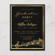A glamorous invitation card for a graduation party. For both him and her. Glamorous with elegant and modern black background and decorated with faux gold music notes. Template for name and party details. With a faux gold frame. The text Graduation and the name are written with modern handlettered style script. Golden letters.