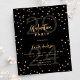 A glamorous invitation card for a graduation party for both him and her. A black background decorated with faux gold stars. Personalize and add a name, year and party details. The text Graduation and the name are written with modern hand lettered style script. Golden colored text.