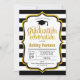 Plain white envelopes are included with paper invitations and will come to fit the invitation size you select. If you don’t need the envelopes, you may choose to not receive them by selecting the dropdown below "Envelopes" and choosing "None." If you’d like to have a design on your envelopes, you can browse all of these available envelopes to find the design that complements your Graduation Party Black White Gold Invitation.