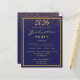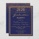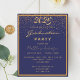 A modern and stylish invitation for a 2026 graduation party. For both him and her. A classic navy blue background and golden confetti rain. With a faux gold frame. Template for name and party details. The text Graduation and the name are written with modern handlettered style script. Golden letters.