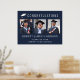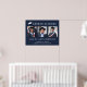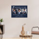 Elegant dark navy blue graduation party poster to celebrate the graduate. "CONGRATULATIONS" is in large white typography with an illustration of a graduation cap. Add three photos and the grad's name, class year and school name in modern white typography. The background and text colors can be edited to match your school colors by editing in the design tool.