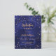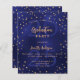 A glamorous invitation card for a graduation party for both him and her. A navy blue background decorated with faux gold stars. The blue color is uneven. Personalize and add a year, name, year and party details. The text Graduation and the name are written with modern hand lettered style script. Golden colored text.