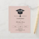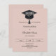 A modern and stylish blush pink neutral invitation for a graduation party. Decorated with a black graduation cap. Personalize and add a name, and the details.