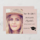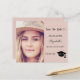 On front: Add your own vertical size photo of the graduate. A trendy blush pink neutral background, black text. Templates for a name and date. The name and the text: Save the Date are written with a modern hand lettered style script. With a cap, tassel topper.