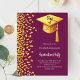 A modern, elegant Graduation party invitation. A burgundy background decorated with faux gold confetti and a large golden graduation cap with tassel. Personalize and add a name and party details. White text.