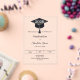 A modern and stylish invitation for a graduation party. Decorated with a black graduation cap. Personalize and add a name, and the details.