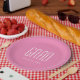 Cute Graduation Class of 2026 pink paper plate with a minimalist design. With white customizable lettering, you can add your own text. A simple party addition for the special party for your grad.