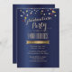 Graduation Party Elegant Navy Blue Confetti Invitation
