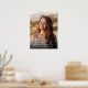 Elegant graduation party welcome sign poster featuring the grad's photo overlayed with "graduate" in a modern white script and their name and class year in simple white typography.