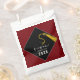 Graduation congrats featuring classic black cap and gold tassel on a maroon background. Edit text to add senior class year.