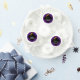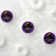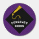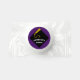 Personalized graduation party favors featuring creative black and gold grad cap on purple background for grad celebration.