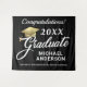 Graduation Party Backdrop. Faux gold foil look with mortarboard cap with varsity style script lettering. Fully customizable -- easily add your own text, change the background color, text size and style. Trendy but traditional background setting for your graduate's celebration.