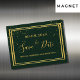 A Save the Date magnetic card for a Graduation Party party. A green background decorated with golden confetti and a faux gold frame. Personalize and add a date and name. Golden colored letters. The text: Save the Date is written with a large trendy hand lettered style script.