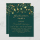 A glamorous invitation for a 20xx (any year) graduation party for both him and her. A green background decorated with faux gold stars. Personalize and add a name and party details. The text Graduation and the name are written with modern hand lettered style script. Golden colored text.