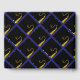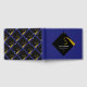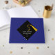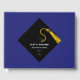 Creative graduation guest book to include words of advice and good luck wishes featuring black and gold cap pattern on blue background. To personalize edit text to add graduate's name, school and senior class year.