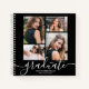 Graduation party spiral-bound SOFT or HARD cover guest book lets party guests, friends and family can sign their best wishes, even add instant photos. Your favorite photos on the front with your name, class year and school in chic lettering along with the word Graduate in an elegant script. Select your page style when ordering. MATCHING items and more designs in our collection.