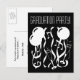 Black and white graduation party invitation postcards. Festive card idea with celebration illustration including party balloons, champagne flutes, music notes and confetti. Change the quantity to get the cheapest price per card. Personalizable invite text on the back. Great design for high school or college graduations.