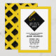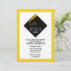 Creative yellow, black and gold graduation party invites featuring black and gold grad cap.