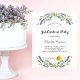 A white background decorated with lavender flowers and eucalyptus greenery. Personalize and a name and details.