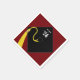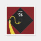 Creative graduation party napkins for senior class event featuring funny line and classic black graduation cap with gold tassel on maroon background.