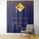 A navy blue background. Decorated with golden confetti and a modern, abstract faux gold cap, hat, tassel topper with the year inside. Text: Congratulations! The text: Graduate, and the name are written with a large modern hand lettered style script. For both him and her. A banner , party decoration, or photo booth, backdrop for graduation party.