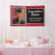 A personalized customizable photo banner for a graduating senior from high school or college. Personalize with graduation date, name of school, graduating student's name, and photo. The background is our graduation caps mortarboards flying in the air design on red for red and black school colors.