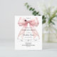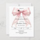 Celebrate your achievement with this elegant pink bow graduation invitation. The design features a large, sophisticated bow with ribbon adorned with delicate pearl strings and a subtle mortarboard icon. It is the perfect choice for high school or college seniors looking for a feminine and chic announcement.