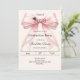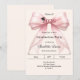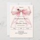 Celebrate your achievement with this elegant pink bow graduation invitation. The design features a large, sophisticated bow with ribbon adorned with delicate pearl strings and a subtle mortarboard icon. It is the perfect choice for high school or college seniors looking for a feminine and chic announcement. Soft cream, ivory colored background.