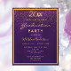 A modern and stylish invitation for a graduation party. A deep purple background and golden confetti rain. The purple color is uneven. With a faux gold frame. Template for name and party details. The text Graduation and the name are written with modern handlettered style script. Golden letters.