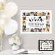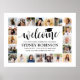 Add a personalized touch to college or high school graduation party decorations with a stylish photo collage 18"x24" welcome poster. The pictures and all wording on this downloadable sign template are simple to customize, and colors are easy to change with the Zazzle design tool. The black and white design features trendy handwritten script calligraphy, chic modern minimalist typography, and 20 square photos of your choice, such as senior pictures or images from the commencement ceremony. This printable graduation poster is an elegant way to welcome friends and family to a special day celebration. Congratulations to the graduate!